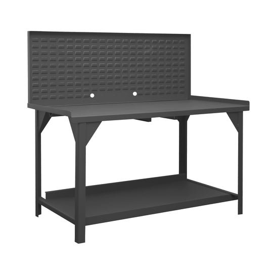 Heavy Duty Workbench, 60 x 30, 12 Gauge, Steel Top, 1-1/2" End Stops, Louvered Panel, Bottom Shelf with Back Stop, 4000 lbs. Capacity, Gray