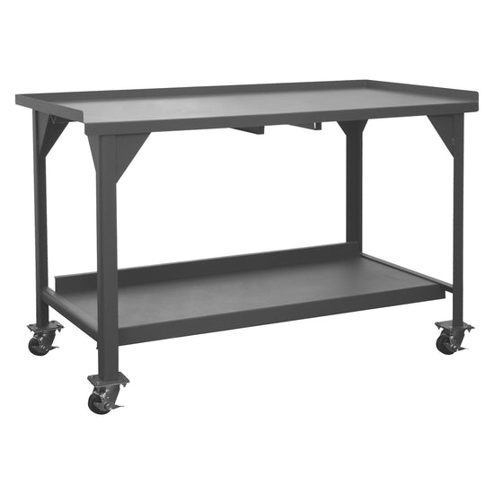 Mobile Workbench, 60 x 30, 12 Gauge, Steel Top, 1-1/2" Back and End Stops, Bottom Shelf with Back Stop, 4000 lbs. Capacity, 3" x 1-13/16" Phenolic Casters - (4) Swivel with Side Brakes, Gray
