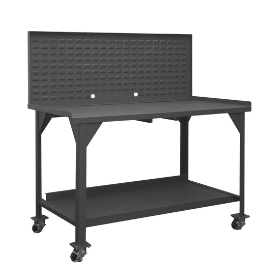 Mobile Workbench, 60 x 30, 12 Gauge, Steel Top, 1-1/2" End Stops, Louvered Panel, Bottom Shelf with Back Stop, 4000 lbs. Capacity, 3" x 1-13/16" Phenolic Casters - (4) Swivel with Side Brakes, Gray