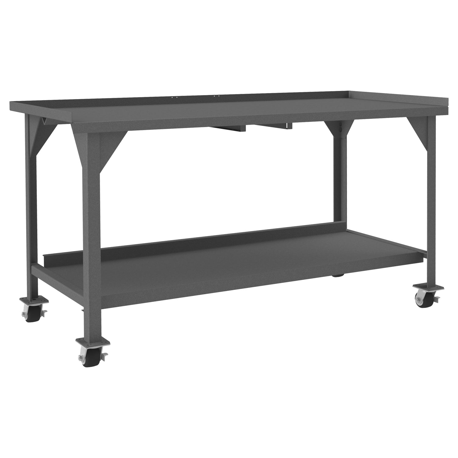 Mobile Workbench, 72 x 30, 12 Gauge, Steel Top, 1-1/2" Back and End Stops, Bottom Shelf with Back Stop, 4000 lbs. Capacity, 3" x 1-13/16" Phenolic Casters - (4) Swivel with Side Brakes, Gray