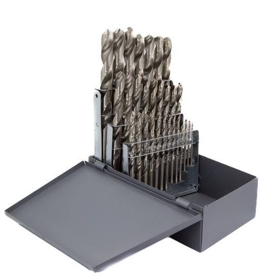 A dependable, general purpose high speed steel drill bit ideal for production, maintenance or portable drilling jobs. They are for use in a wide range of materials such as aluminum, brass, copper, metal, plastic and wood. They have a bright finish which provides superior chip evacuation and are made of high speed steel with a 118° conventional point. These drill bits are jobber (standard) length with a round shank for use in a wide range of tool holding systems.