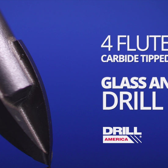 4 flute carbide tipped glass and tile drill bit improves speed, longevity and accuracy compared to standard spear-tipped glass and tile drills. Glass and tile drills have a tungsten carbide tips and are suitable for glass, mirrors & very hard ceramic tile. Rotation only and slow drilling speeds are recommended. 1/4" Quick change hex shank can be used in quick change impact driver.