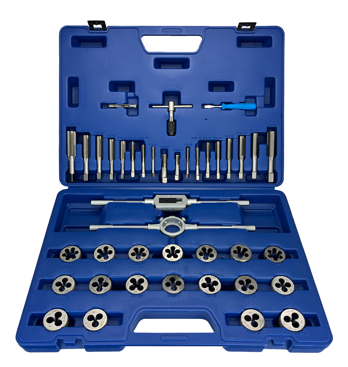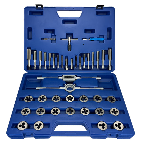 41 Piece NC NF HSS Round Tap and Die Set (1/4 - 3/4) with 1-1/2 OD Round Dies and Handles