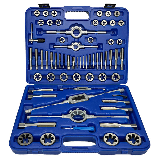 64 Piece NC NF HSS Round Tap and Die Set (#4 - 1) with 1 - 2 OD Round Dies and Handles
