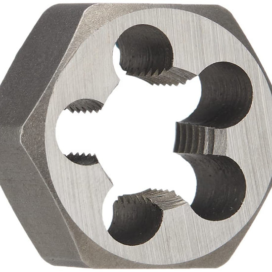 Carbon steel hex dies are for re-threading or cleaning bruised or rusty threads. They are the most cost effective rethreading tool available. No special holder is required for this type of die, any wrench large enough will suffice. Ideal for maintenance in the shop or field.