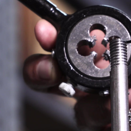 HSS Round Dies are for use in making new threads or re-threading existing threads. They are good for most general purpose applications, offering a combination of hardness and toughness for wear resistance. Round dies are chamfered on both faces, one side has a 2 to 3 thread chamfer for threading and the other side has a 1 to 1-1/2 thread chamfer for threading close to a shoulder. Adjustments are made by a fine pitch screw which forces the sides of the die apart, or allows them to spring together. The slot is beveled so that when the dies are used in a machine holder the adjusting screw can be removed and adjustment made by the adjusting screws in the holder.