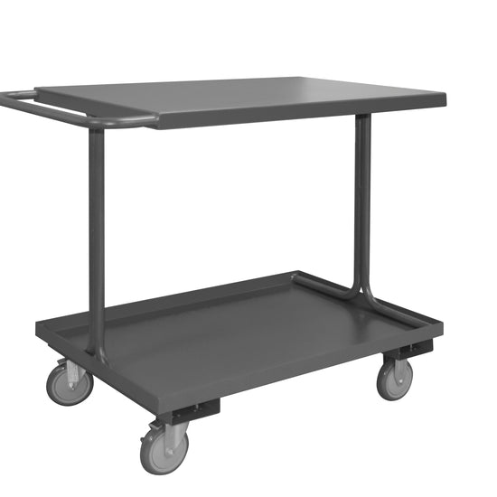 Easy Access Shelf Cart with 5" x 1-1/4" Polyurethane Casters - (2) Rigid, (2) Swivel with Side Breaks, 2 Shelves, 1-1/2" Lips Up on Bottom Shelf, Tubular Push Handle, Gray