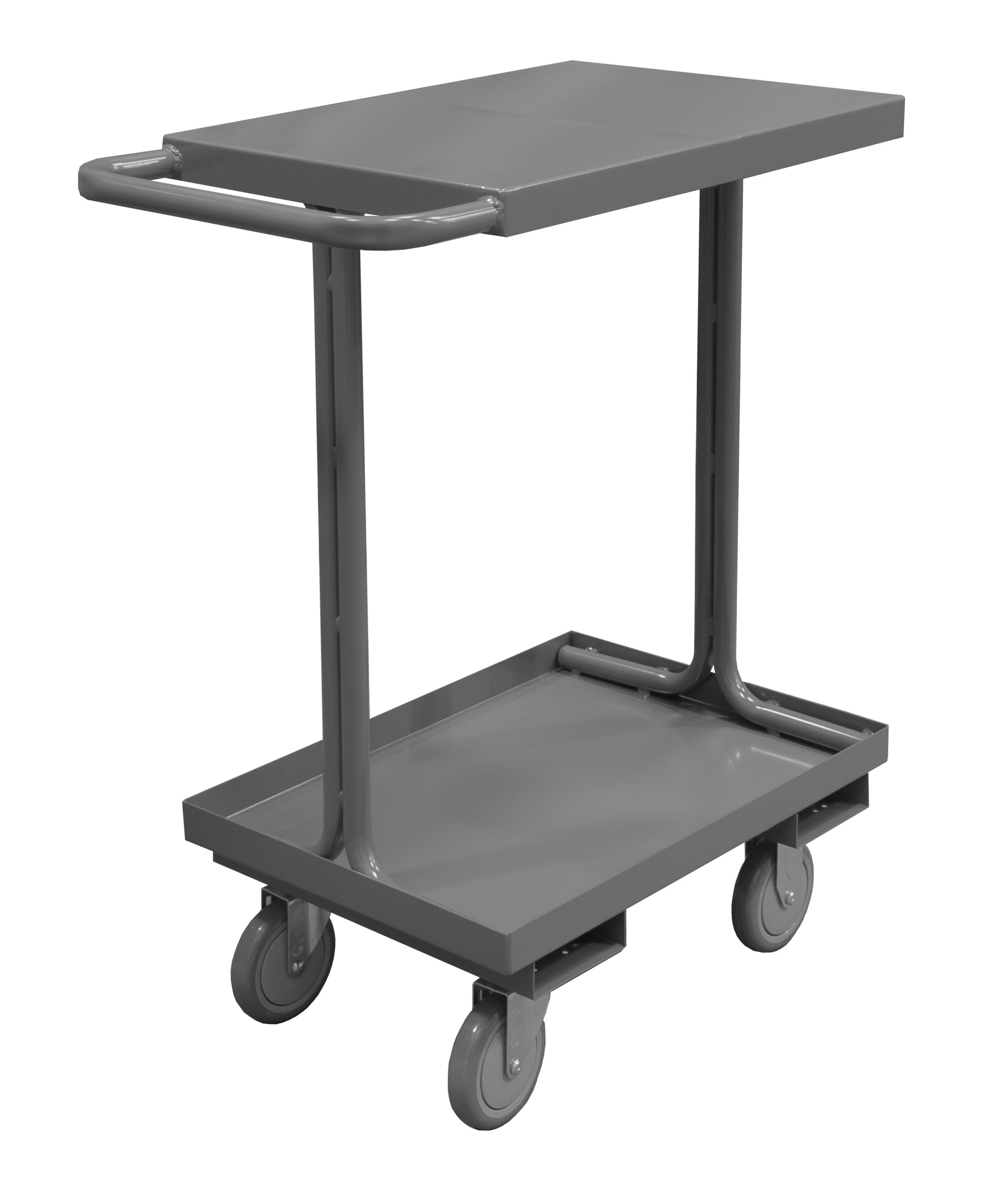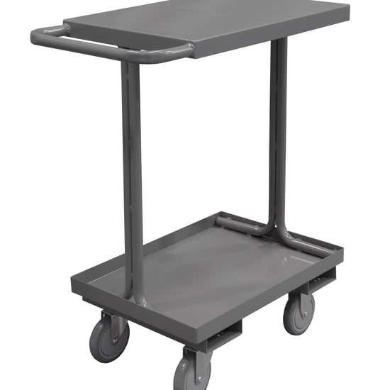 Easy Access Shelf Cart with 5" x 1-1/4" Polyurethane Casters - (2) Rigid, (2) Swivel with Side Breaks, 2 Shelves, 1-1/2" Lips Up on Bottom Shelf, Tubular Push Handle, Gray