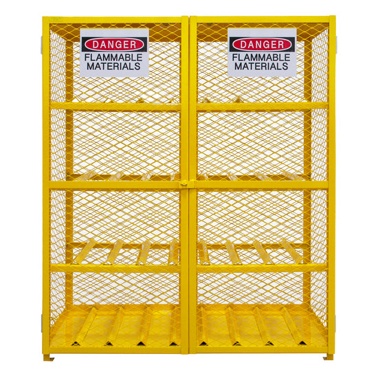 Gas Cylinder Cabinet, Self Closing, Single Door, Angle Iron and Expanded Metal, for Horizontal Storage of 20 And 33 Lb. Lpg Cylinders, 16 Cylinder Capacity, Safety Yellow