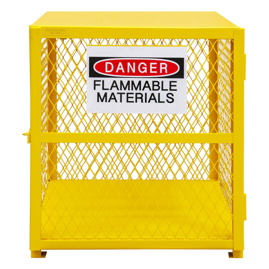 Gas Cylinder Cabinet, Single Door, Angle Iron and Expanded Metal, for Vertical Storage of 50 Lb. Cylinders, 4 Cylinder Capacity, Safety Yellow