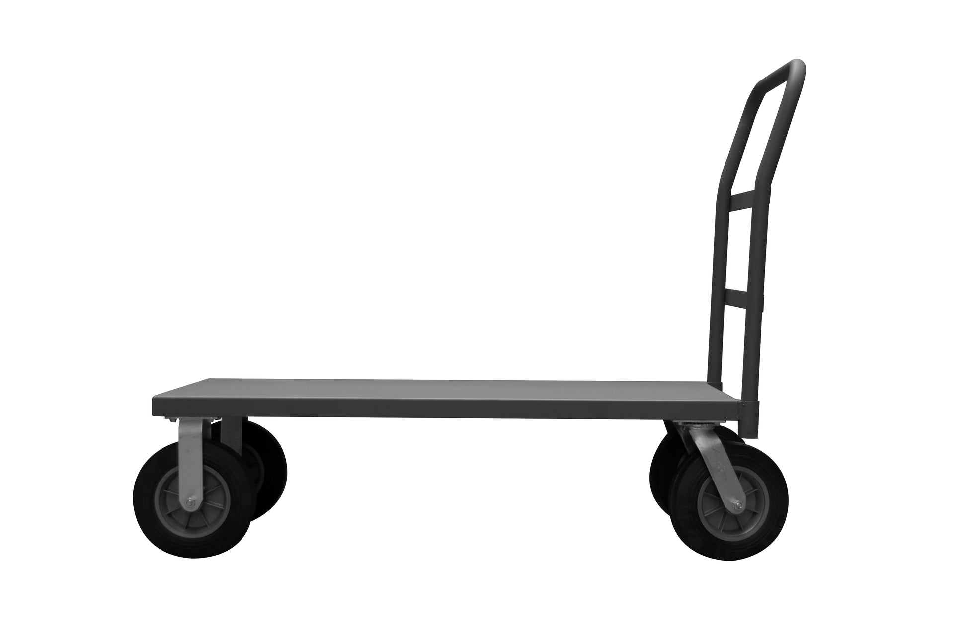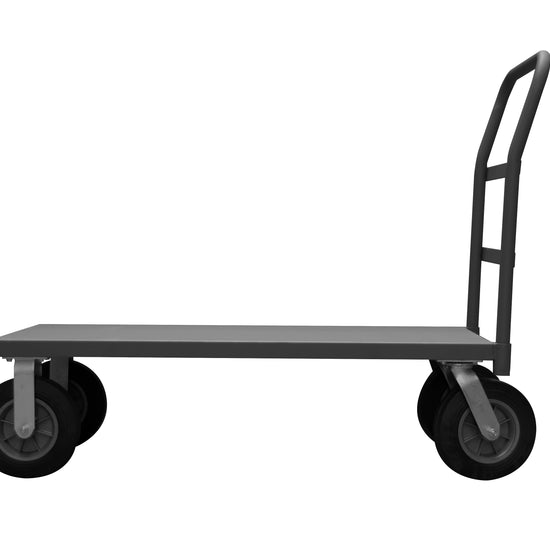 Platform Truck, 12 Gauge, 1500 lbs Capacity, 30 x 60, Flush Deck, 10 x 2-9/16 Semi-Pneumatic Casters - (2) Rigid, (2) Swivel, Gray