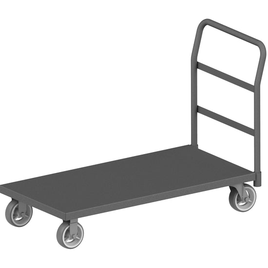 Platform Truck, 12 Gauge, 2400 lbs Capacity, 30 x 60, Flush Deck, 5 x 2 Mold-On Rubber Casters - (2) Rigid, (2) Swivel, Gray