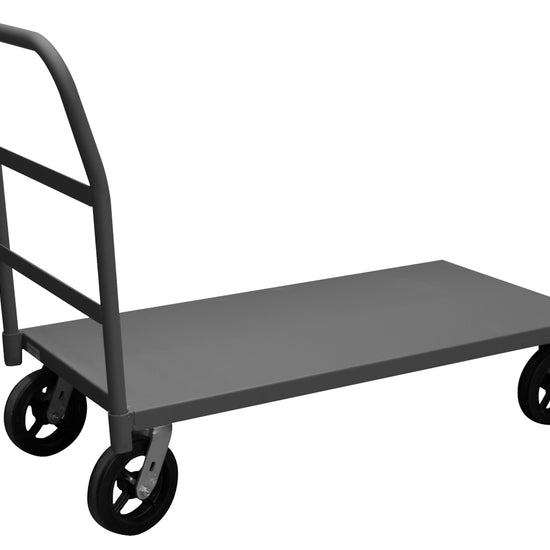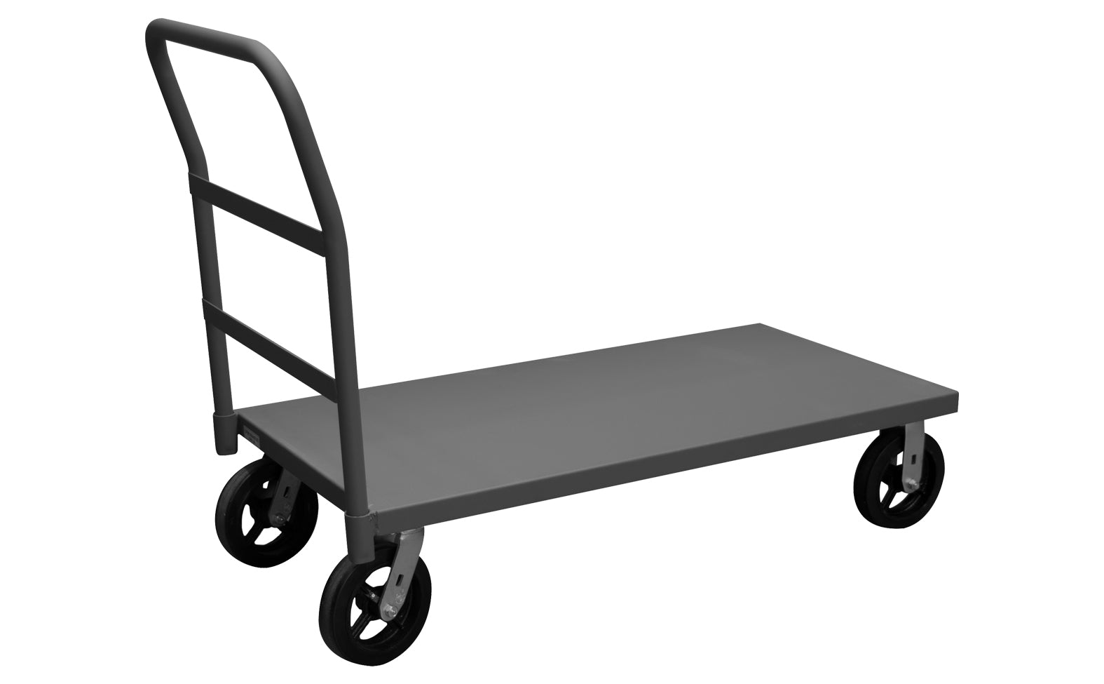 Platform Truck, 12 Gauge, 2400 lbs Capacity, 36 x 72, Flush Deck, 8 x 2 Mold-On Rubber Casters - (2) Rigid, (2) Swivel, Gray
