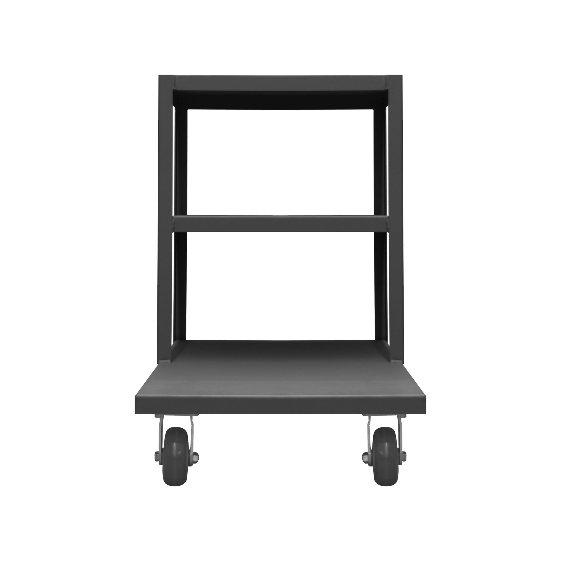 Platform Truck, Multi Level, 12 Gauge, 1200 lbs Capacity, 3 Shelves, Flush Deck, 5 x 1-1/4 Polyurethane - Non-Marking Casters - (2) Rigid, (2) Swivel with Side Brakes, Gray