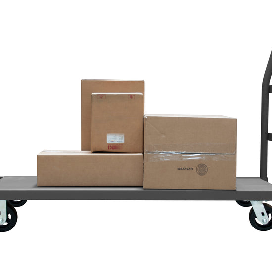 Platform Truck, 12 Gauge, 2000 lbs Capacity, 30 x 60, Flush Deck, 4 Sockets, 5 x 2 Mold-On Rubber Casters - (2) Rigid, (2) Swivel, Gray