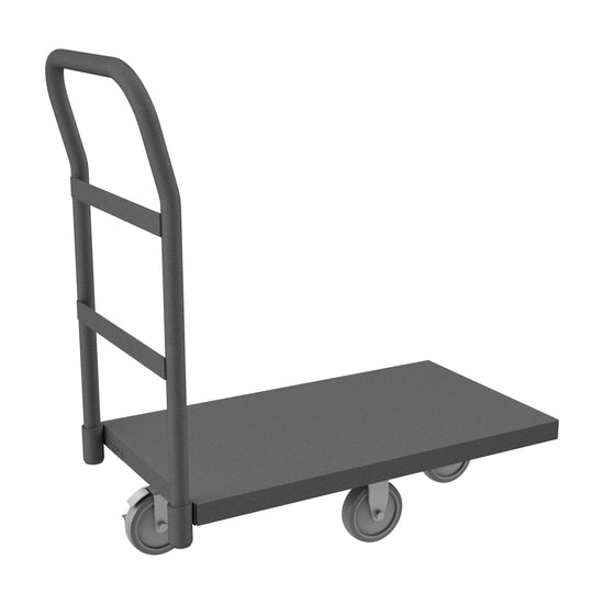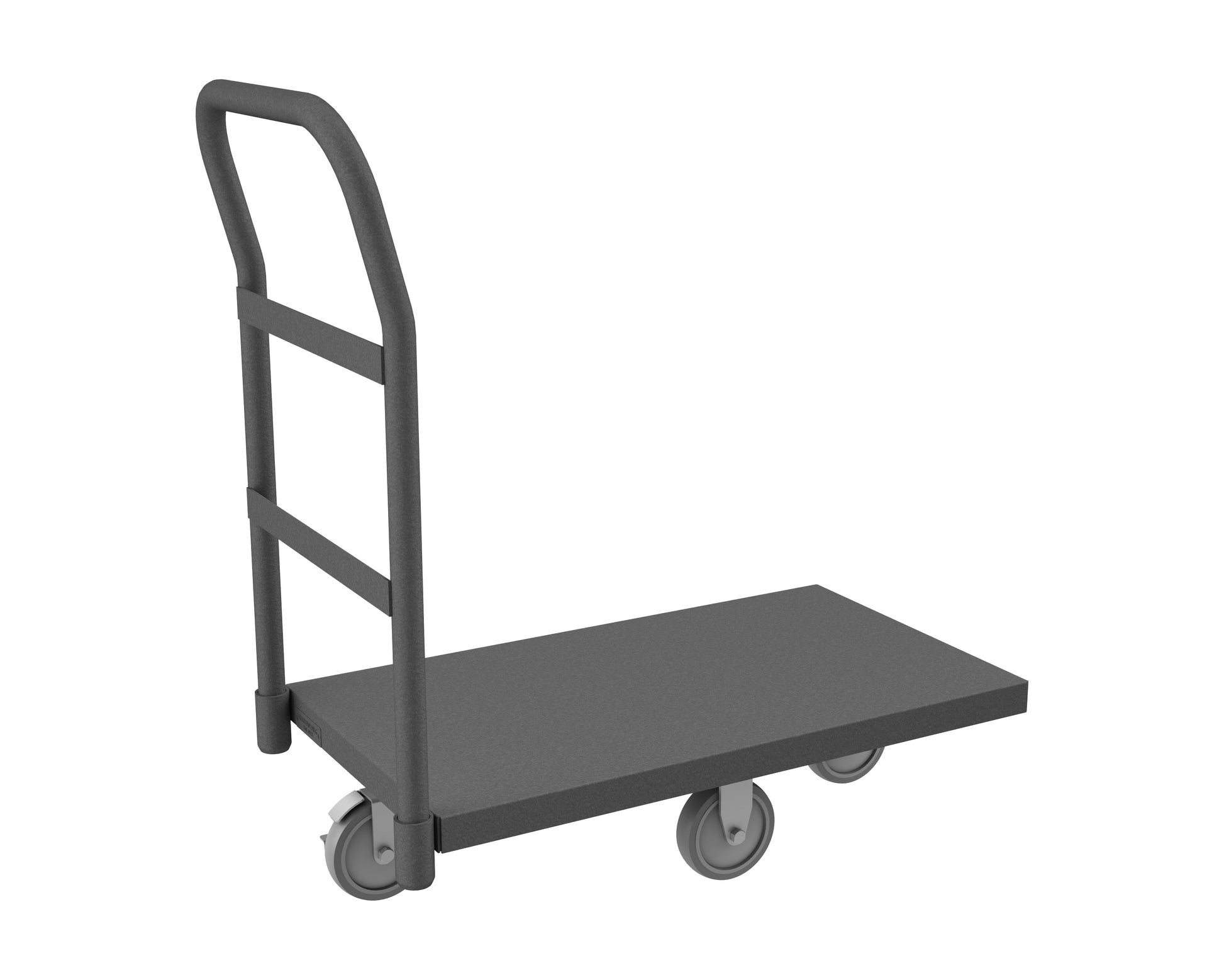 Platform Truck, 12 Gauge, 1400 lbs Capacity, 18 x 32, Flush Deck, 5 x 1-1/4 Polyurethane - Non-Marking Casters - (2) Rigid, (2) Swivel with Side Brakes, Gray