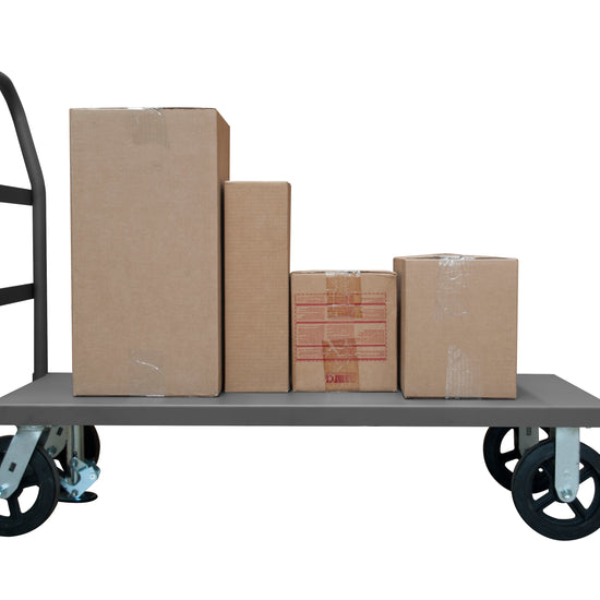 Platform Truck, 12 Gauge, 2400 lbs Capacity, Floor lock, 24 x 36, Flush Deck, 8 x 2 Mold-On Rubber Casters - (2) Rigid, (2) Swivel, Gray