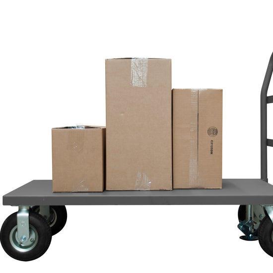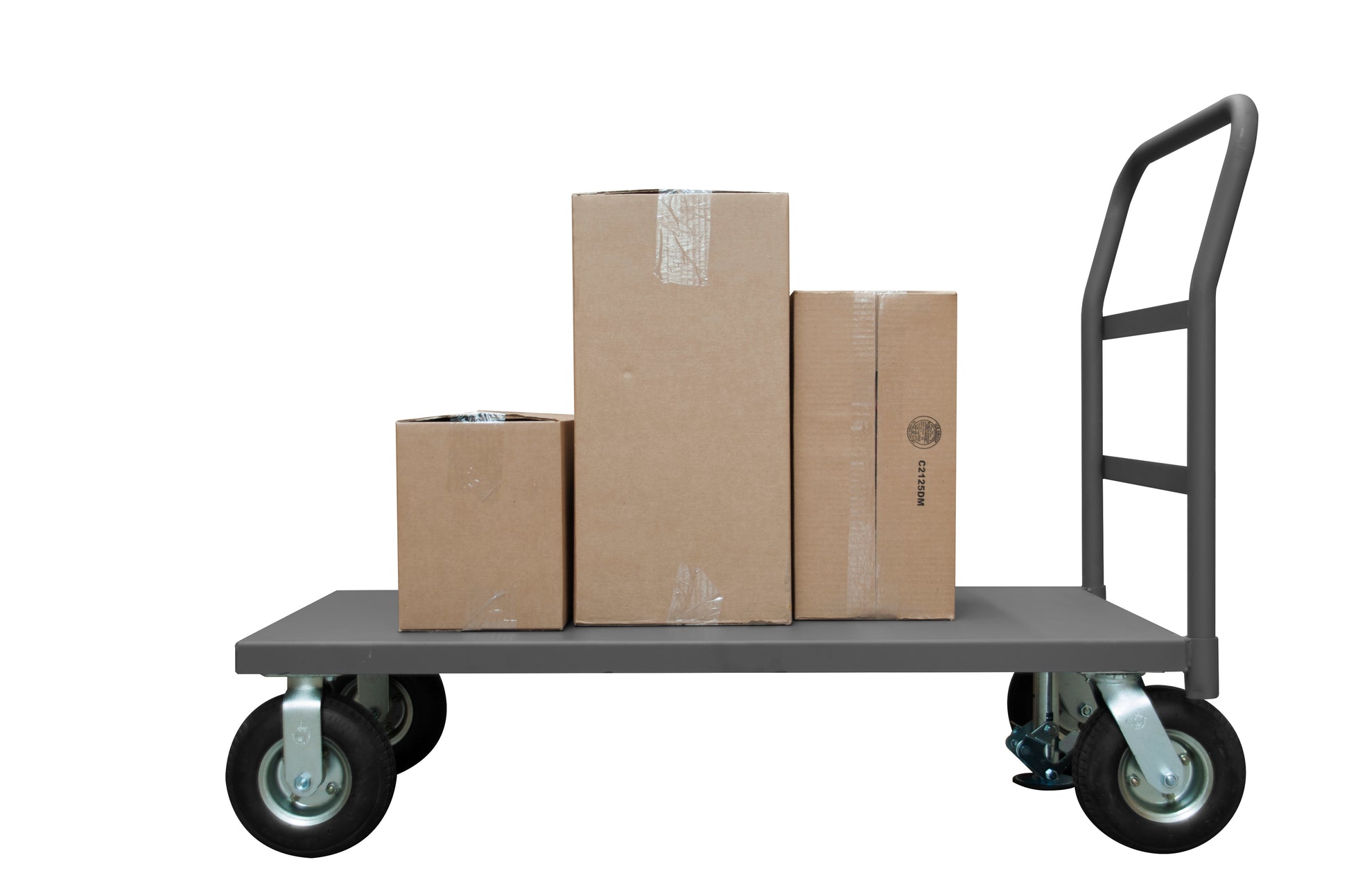 Platform Truck, 12 Gauge, 1000 lbs Capacity, Floor lock, 24 x 48, Flush Deck, 8 x 2-3/4 Pneumatic Casters - (2) Rigid, (2) Swivel, Gray