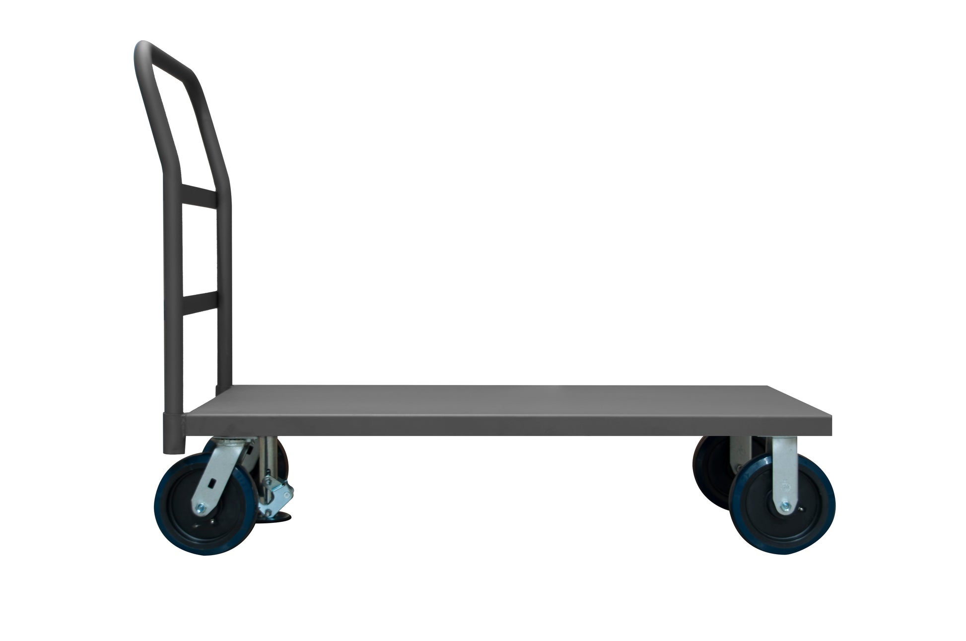 Platform Truck, 12 Gauge, 3600 lbs Capacity, Floor lock, 30 x 60, Flush Deck, 8 x 2 Polyurethane - Non-Marking Casters - (2) Rigid, (2) Swivel, Gray