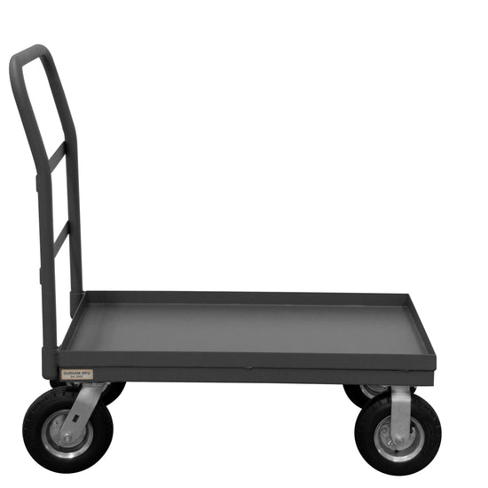 Platform Truck, 12 Gauge, 1000 lbs Capacity, 24 x 72, Lipped Deck, 8 x 2-3/4 Pneumatic Casters - (2) Rigid, (2) Swivel, Gray