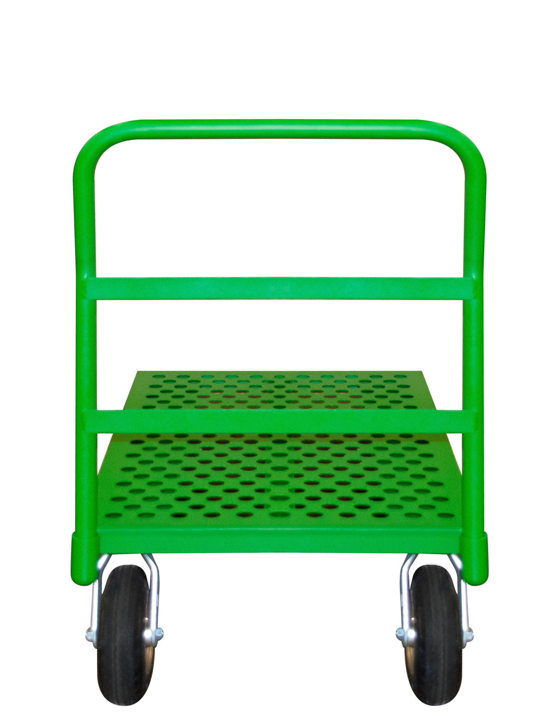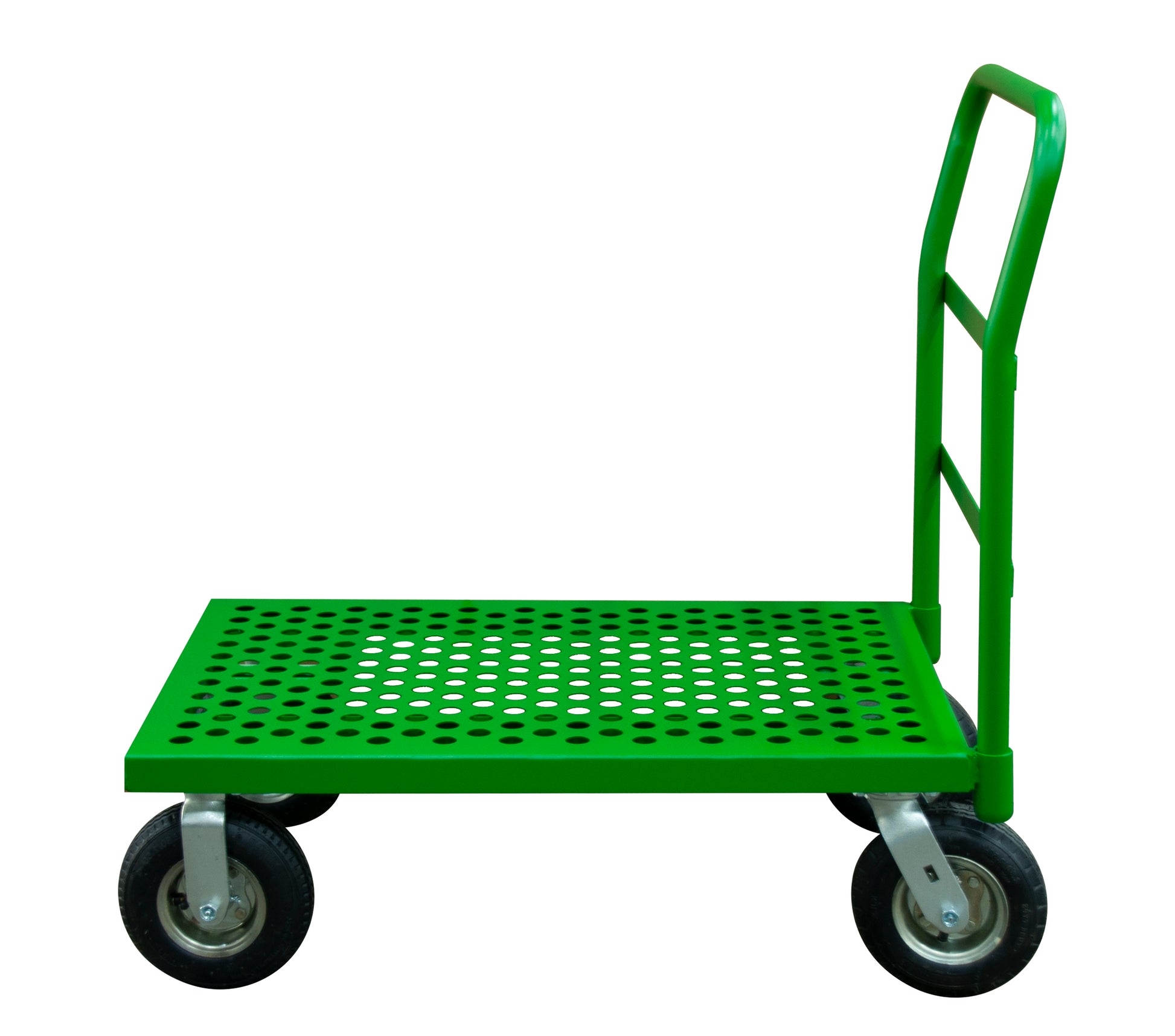 Platform Truck, 12 Gauge, 1000 lbs Capacity, 24 x 36, Perforated Flush Deck, 8 x 2-3/4 Pneumatic Casters - (2) Rigid, (2) Swivel, Green