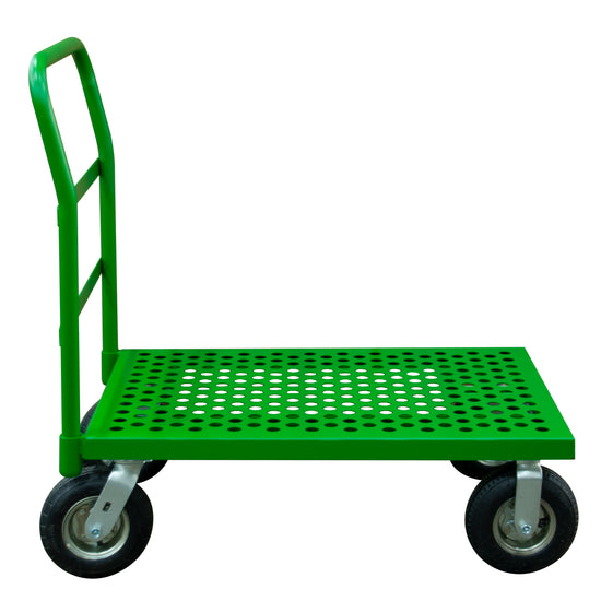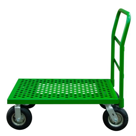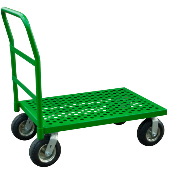 Platform Truck, 12 Gauge, 1000 lbs Capacity, 24 x 48, Perforated Flush Deck, 8 x 2-3/4 Pneumatic Casters - (2) Rigid, (2) Swivel, Green