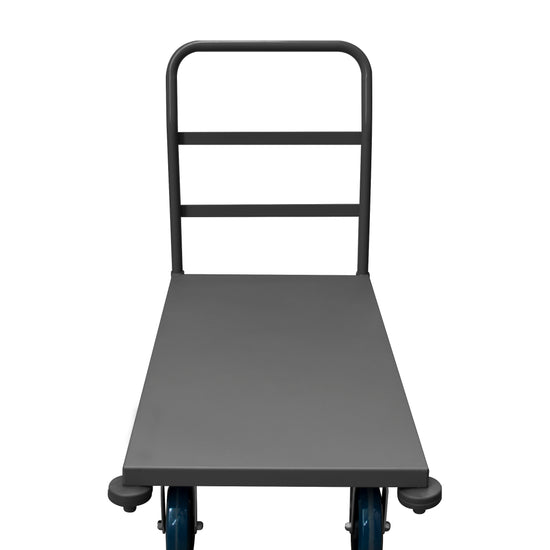 Platform Truck, 12 Gauge, 3600 lbs Capacity, Front Corner Bumpers, 30 x 60, Flush Deck, 8 x 2 Polyurethane - Non-Marking Casters - (2) Rigid, (2) Swivel with Side Brakes, Gray