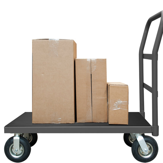Platform Truck, 12 Gauge, 1000 lbs Capacity, Non-Slip Vinyl Matting, 36 x 48, Flush Deck, 8 x 2-3/4 Pneumatic Casters - (2) Rigid, (2) Swivel, Gray