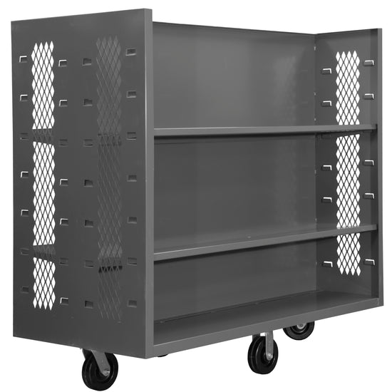 2 Sided Mesh Stock Truck with 6" x 2" Phenolic Bolt-On Casters - (2) Rigid, (2) Swivel, 1 Fixed Shelf, 2 Adjustable Shelves, Punched Diamond Pattern On Sides, Gray