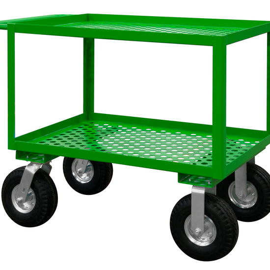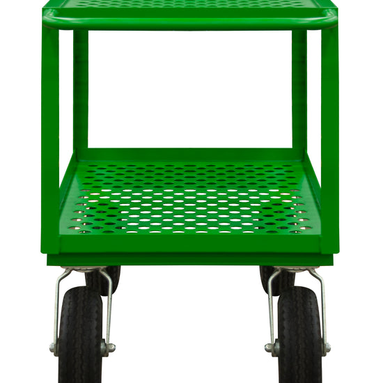 Garden Cart with 10" x 3-1/2" Pneumatic Casters - (2) Rigid, (2) Swivel, 2 Perforated Shelves, 1-1/2" Lips Up, Tubular Push Handle, Green