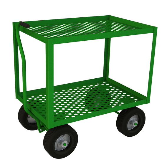 5th Wheel Garden Truck with 10" x 2-3/4" Semi-Pneumatic Wheels, 2 Perforated Shelves, 1-1/2" Lips Up, Tubular Push Handle, Green