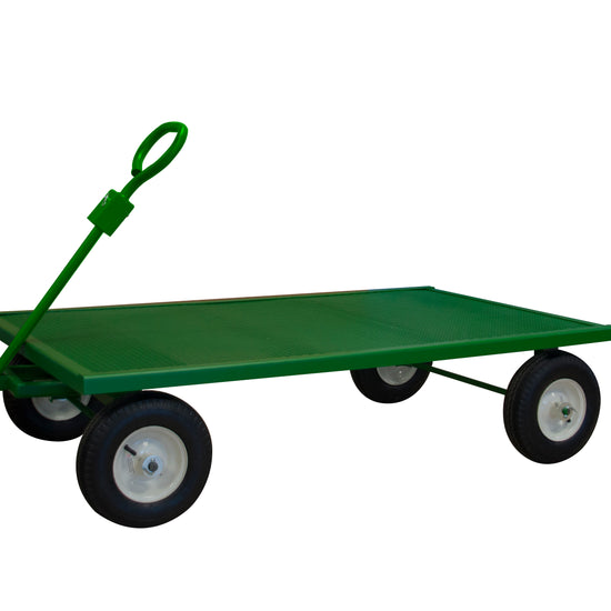 5th Wheel Garden Truck with 12" x 3-1/2" Pneumatic Wheels, Perforated Deck, Tubular Push Handle, Green