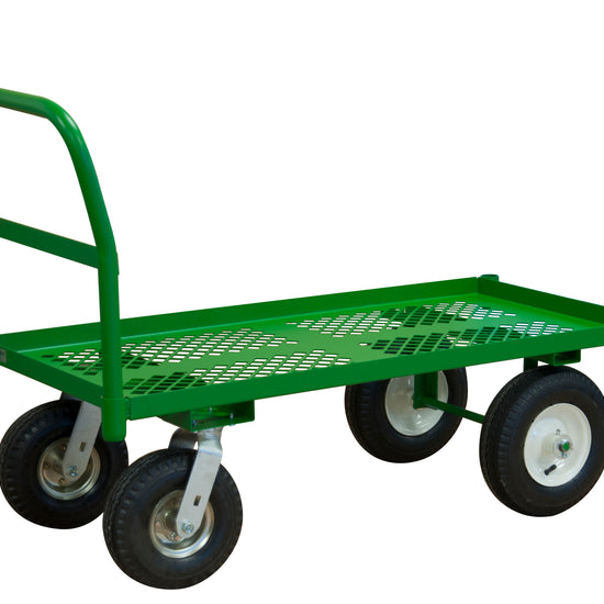 Garden Truck with 10"/12" x 3-1/2" Pneumatic Casters - (2) Rigid, (2) Swivel, Perforated Deck, 1-1/2" Lips Up, Tubular Push Handle, Green
