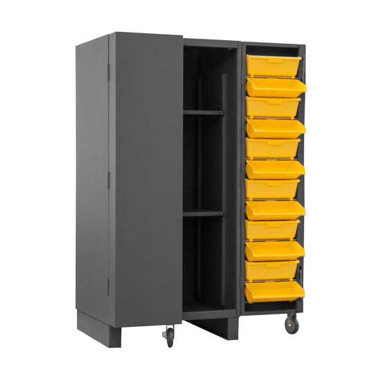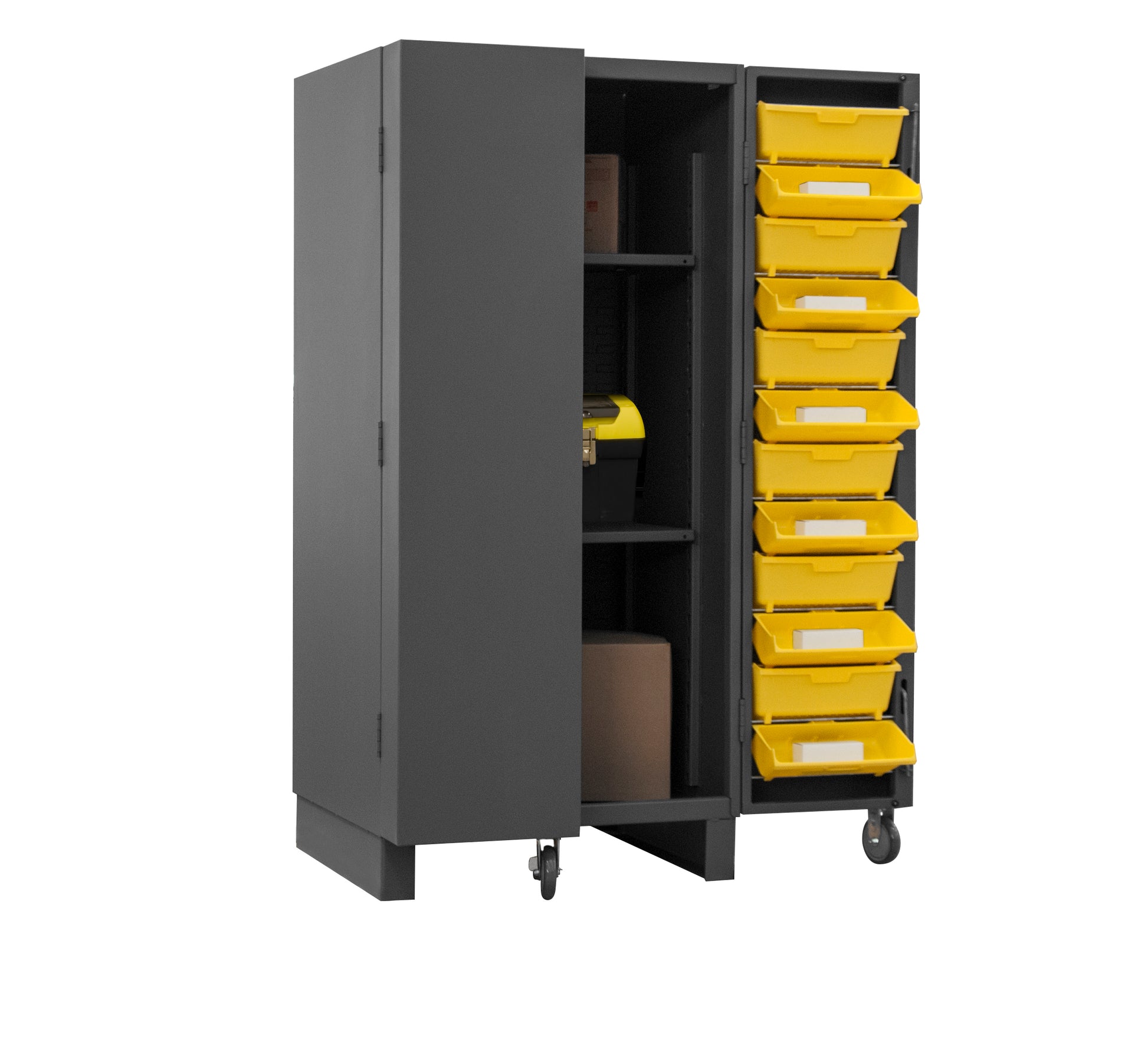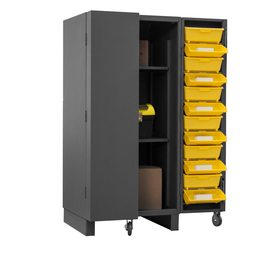 Extra Heavy Duty Cabinet, 12 Gauge, 36 x 36 x 78, 2 Adjustable Shelves, 12 Yellow Bins, Recessed Doors with Tilt Bins, 24 Tilt Bins, Cast Iron Pad-lockable Handle, Gray