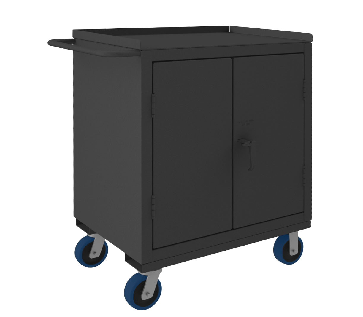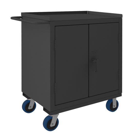 Heavy Duty Mobile Bench Cabinet, 12 Gauge, 24-1/8 x 42-5/16 x 46-3/4, 1 Shelf, 1 Drawer, 2 Doors, 6" x 2" Polyurethane Casters - 2(2) Rigid, (2) Swivel, Tubular Push Handle, Gray