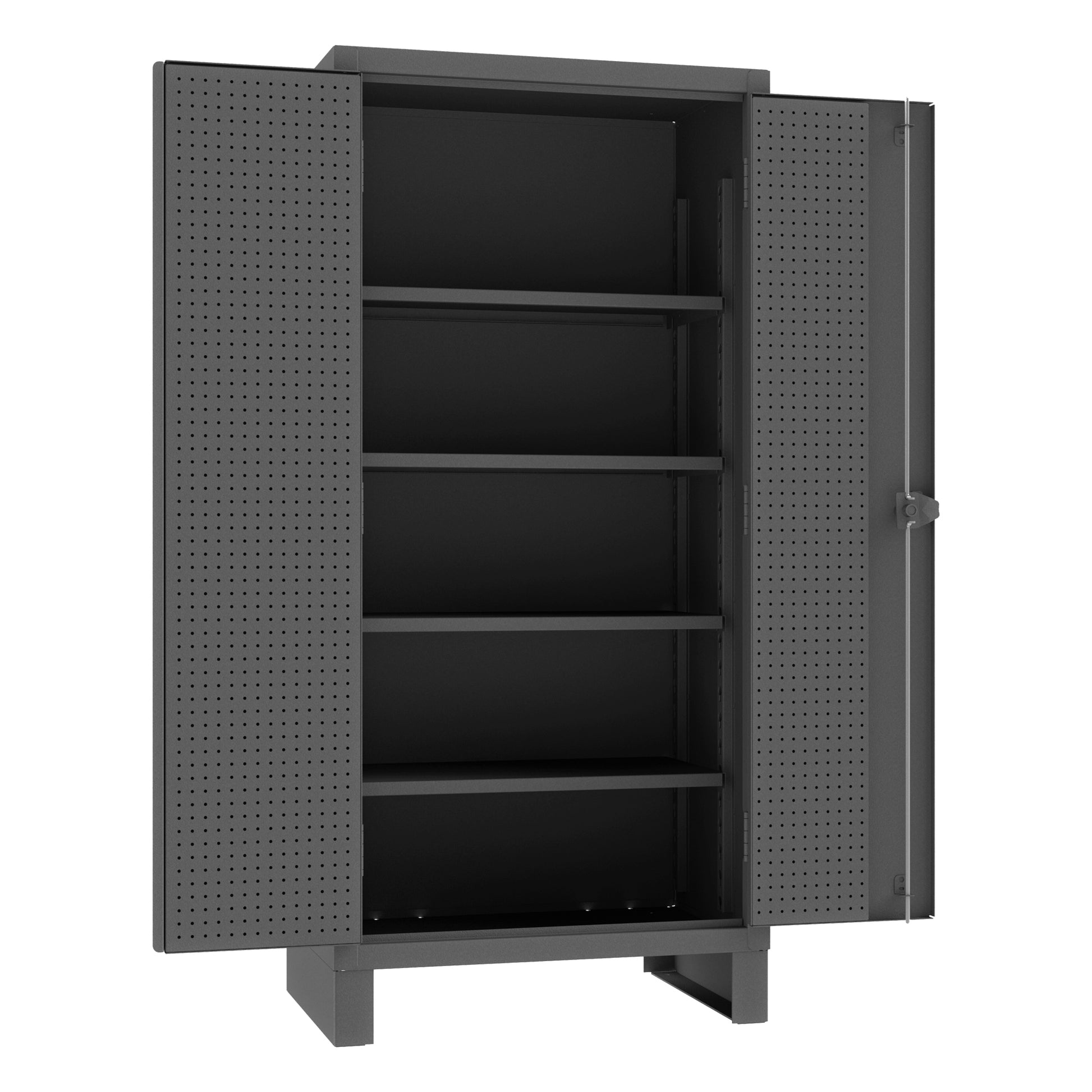 Extra Heavy Duty Cabinet, 12 Gauge, 36 x 24 x 78, 4 Adjustable Shelves, Recessed Door with Pegboard, (32) Piece Peg/Hook Assortment, Cast Iron Pad-lockable Handle, Gray