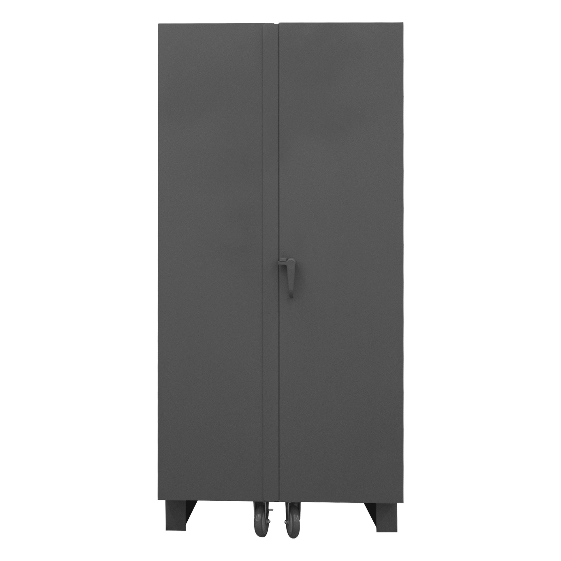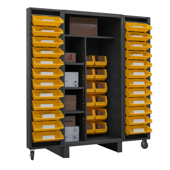 Extra Heavy Duty Cabinet, 12 Gauge, 36 x 36 x 78, 4 Fixed Shelves, 12 Yellow Bins, Recessed Doors with Tilt Bins, 24 Tilt Bins, Cast Iron Pad-lockable Handle, Gray