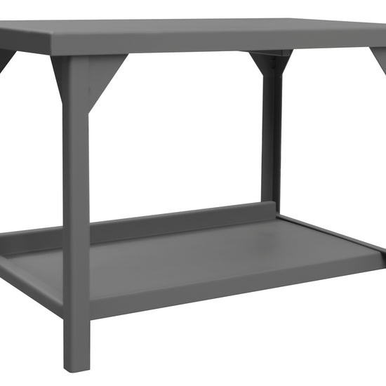 Extra Heavy Duty Workbench, 48 x 30, 3/16" Steel Top with Angle Iron Frame, Bottom Shelf with Back Stop, 12000 lbs. Capacity, Gray