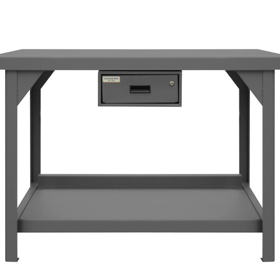 Extra Heavy Duty Workbench, 60 x 36, 3/16" Steel Top with Angle Iron Frame, Bottom Shelf with Back Stop, 1 Drawer, 12000 lbs. Capacity, Gray