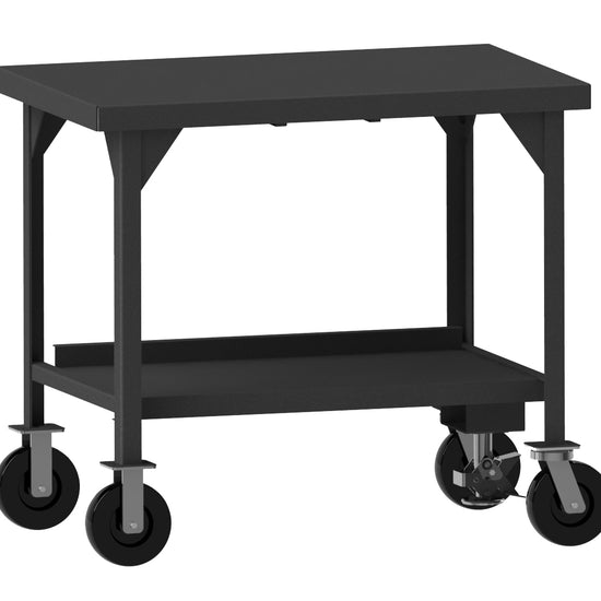 Mobile Workbench, 48 x 30, 3/16" Steel Top with Angle Iron Frame, Floor Lock, Bottom Shelf with Back Stop, 3600 lbs. Capacity, 8" x 2" Phenolic Casters - (2) Rigid, (2) Swivel, Gray