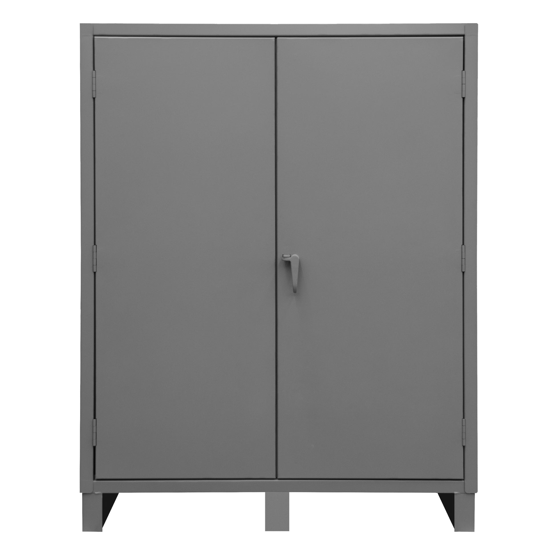Wardrobe Cabinet, 12 Gauge, 60 x 24 x 78, 1 Fixed Shelf, 4 Adjustable Shelves, Hanger Bar, Recessed Doors, Cast Iron Pad-lockable Handle, Gray