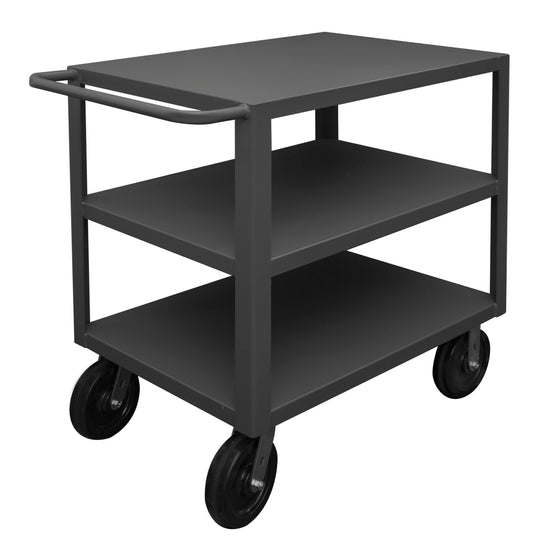 Heavy Duty Service Truck, 12 Gauge Steel, 3 Shelves, 24 x 36, 5000 lbs. Capacity, 8" x 2" Phenolic Casters - (2) Rigid, (2) Swivel, Gray