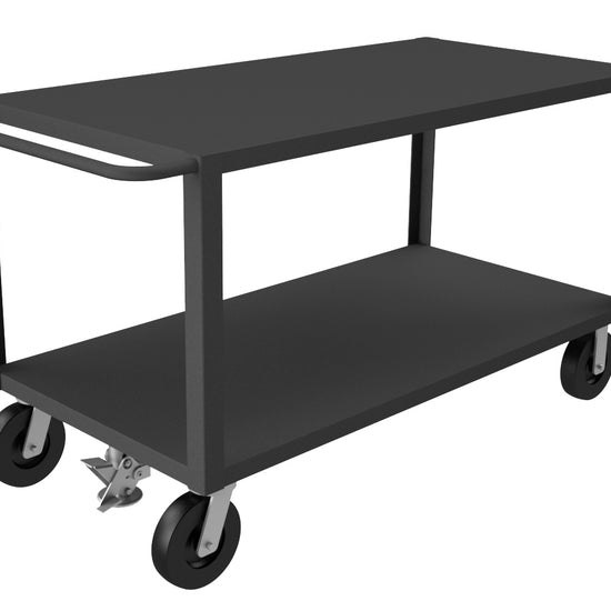 Heavy Duty Service Truck, 12 Gauge Steel, 2 Shelves, 30 x 60, 5000 lbs. Capacity, 8" x 2" Phenolic Casters - (2) Rigid, (2) Swivel, Floor Lock, Gray