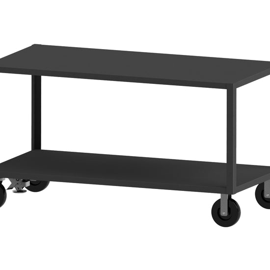 Heavy Duty Service Truck, 12 Gauge Steel, 2 Shelves, 30 x 72, 5000 lbs. Capacity, No Handle, 8" x 2" Phenolic Casters - (2) Rigid, (2) Swivel, Floor Lock, Gray