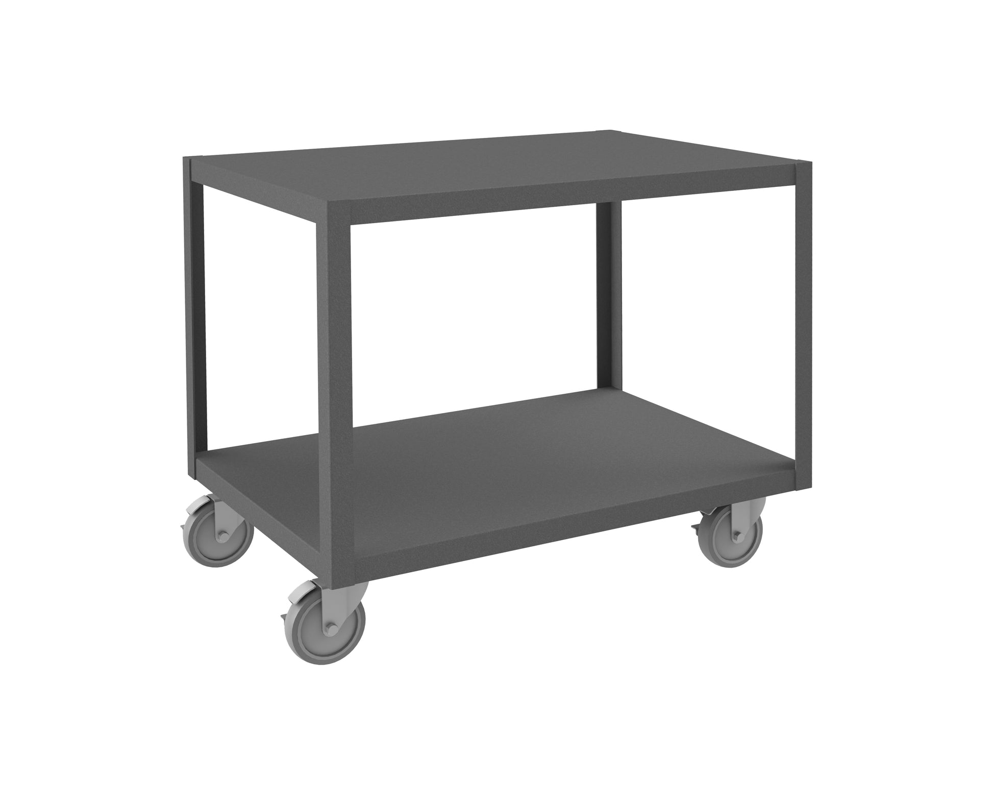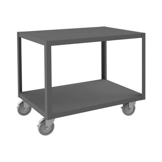 High Deck Mobile Table, 14 Gauge Steel, 2 Shelves, 24 x 36, 1200 lbs. Capacity, 5" x 1-1/4" Polyurethane Casters - (4) Swivel with Side Brakes, Gray