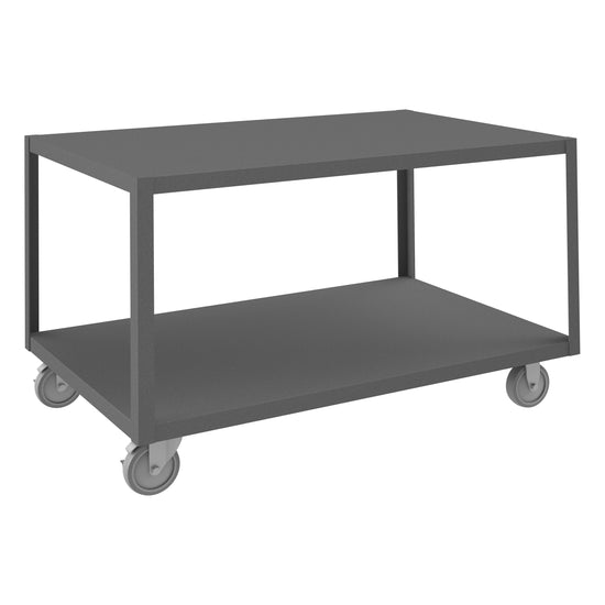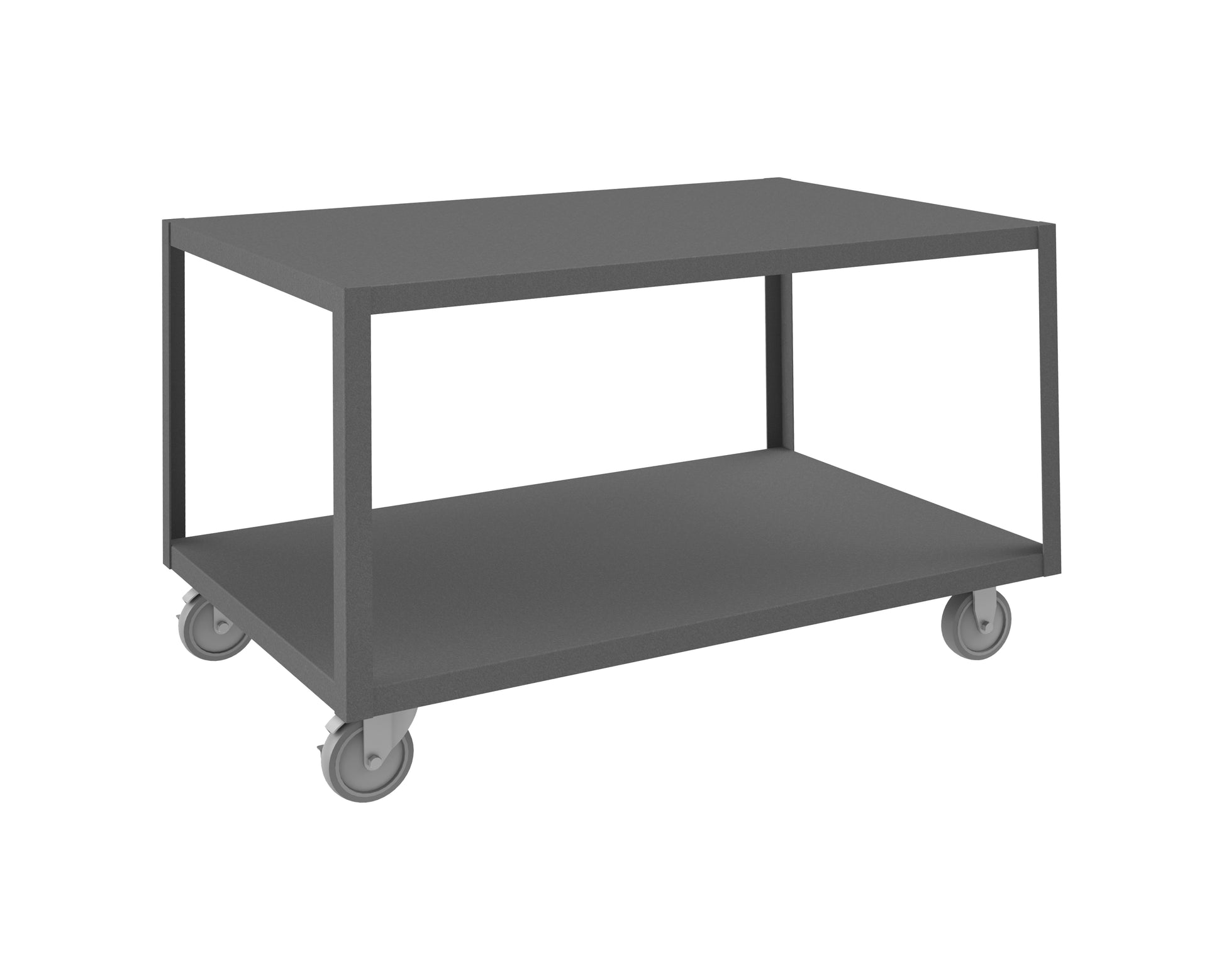 High Deck Mobile Table, 14 Gauge Steel, 2 Shelves, 30 x 48, 1200 lbs. Capacity, 5" x 1-1/4" Polyurethane Casters - (2) Rigid, (2) Swivel with Side Brakes, Gray