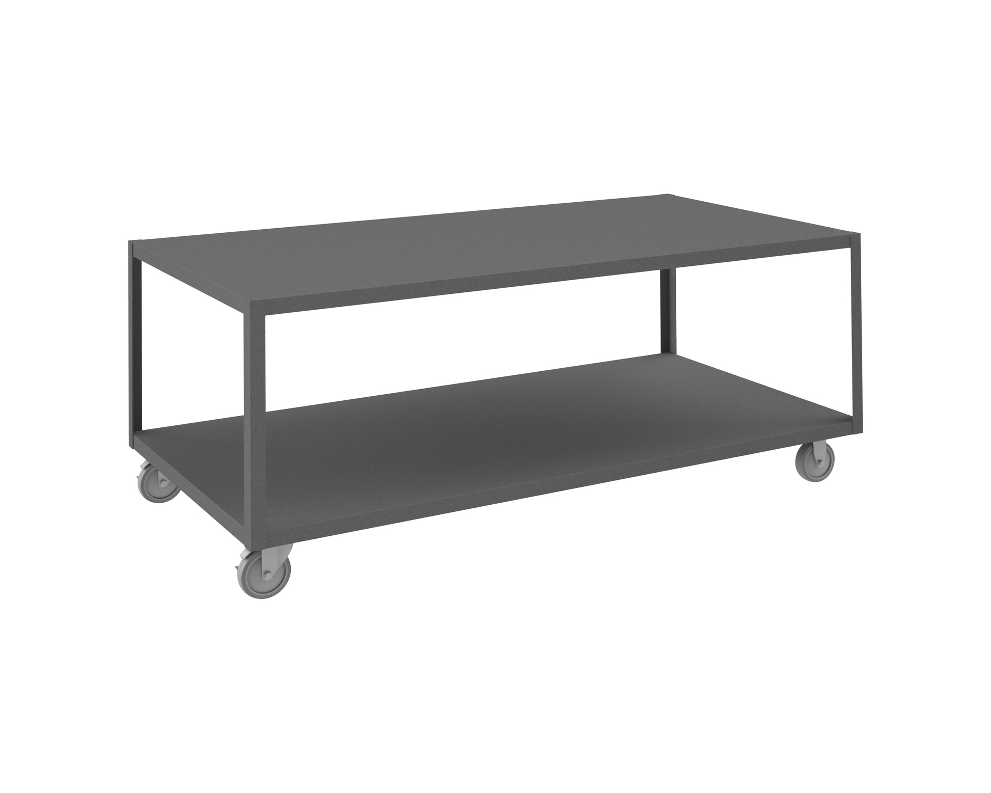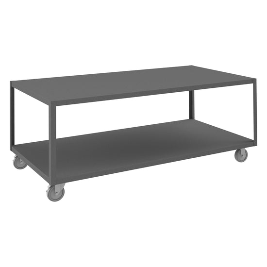 High Deck Mobile Table, 14 Gauge Steel, 2 Shelves, 36 x 72, 1200 lbs. Capacity, 5" x 1-1/4" Polyurethane Casters - (2) Rigid, (2) Swivel with Side Brakes, Gray