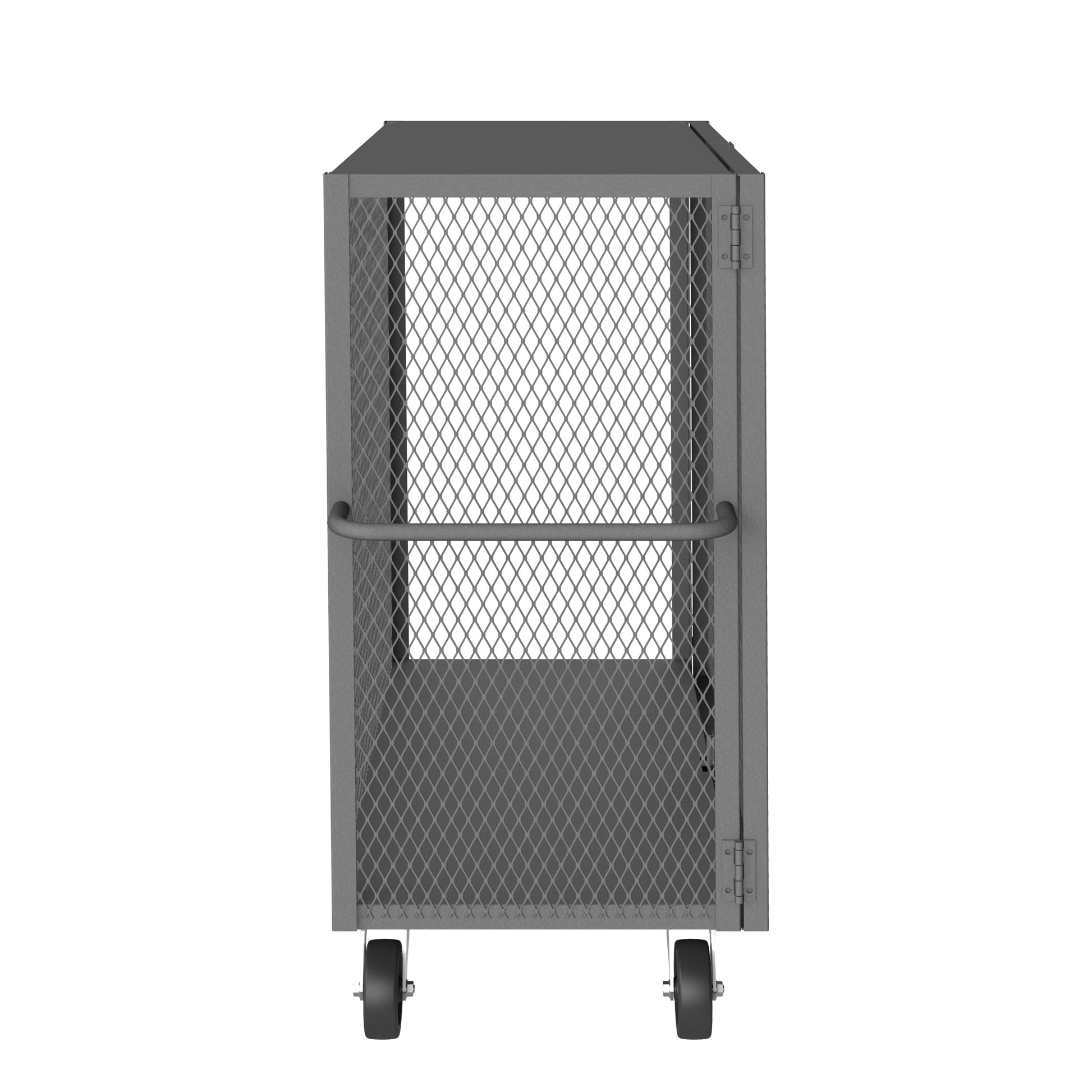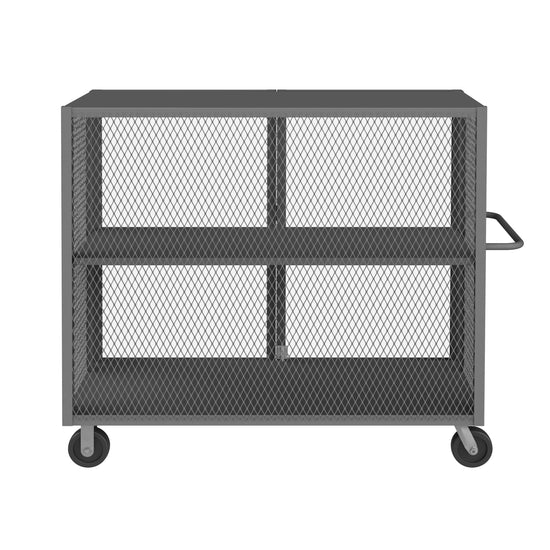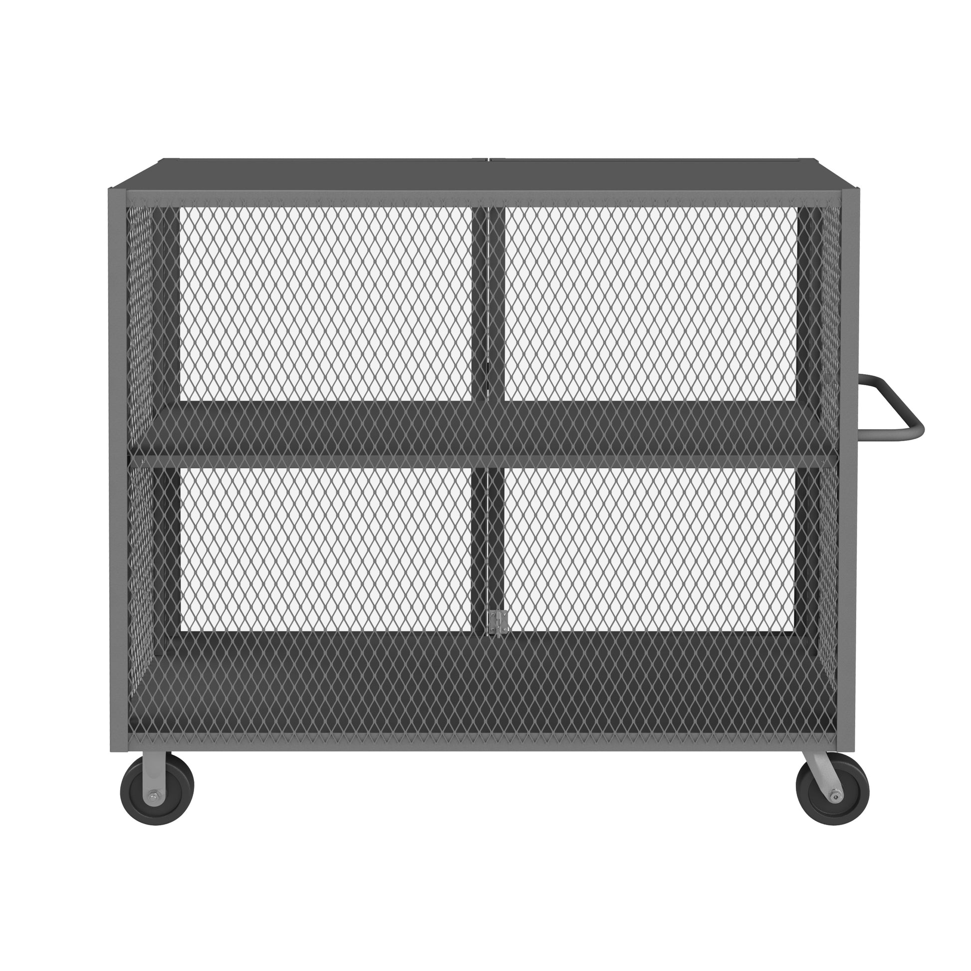 Cage Truck, 24 x 48, Double Door, 6" x 2" Phenolic Casters - (2) Rigid, (2) Swivel, Low Deck, Tubular Push Handle, Pad Lockable Gray