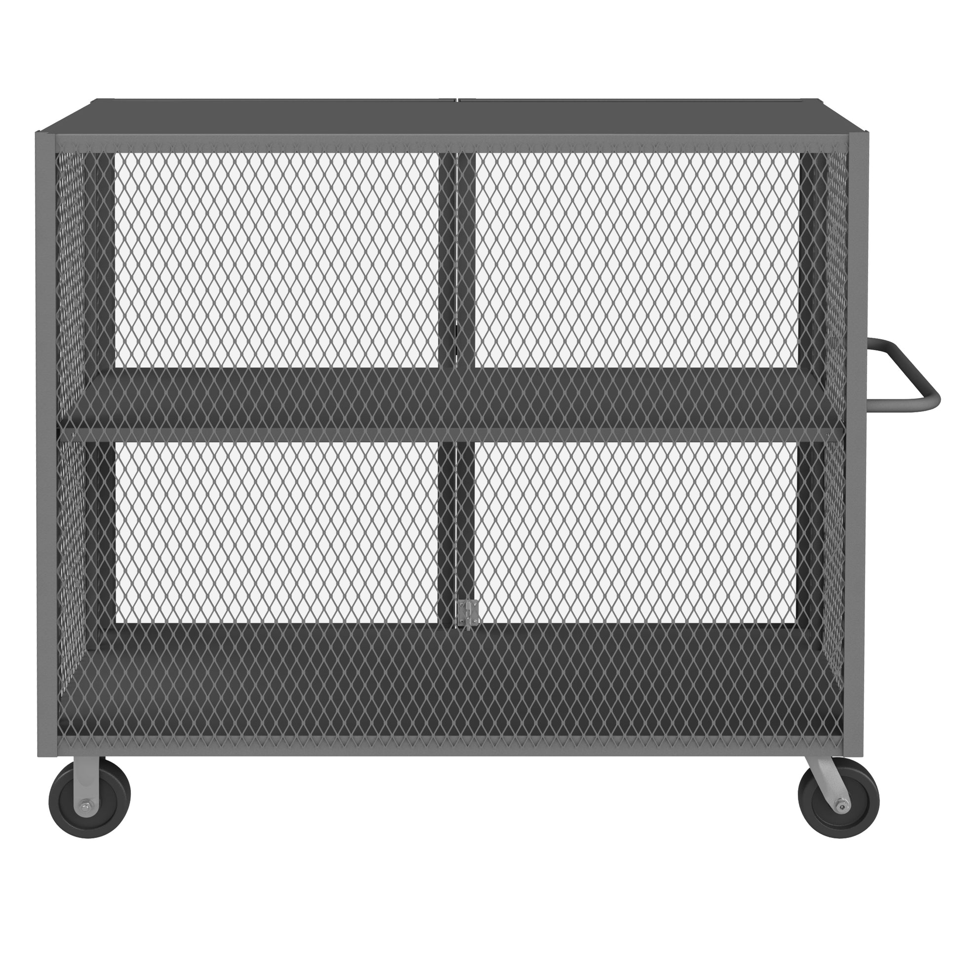 Cage Truck, 30 x 48, Double Door, 6" x 2" Phenolic Casters - (2) Rigid, (2) Swivel, Low Deck, Tubular Push Handle, Pad Lockable Gray