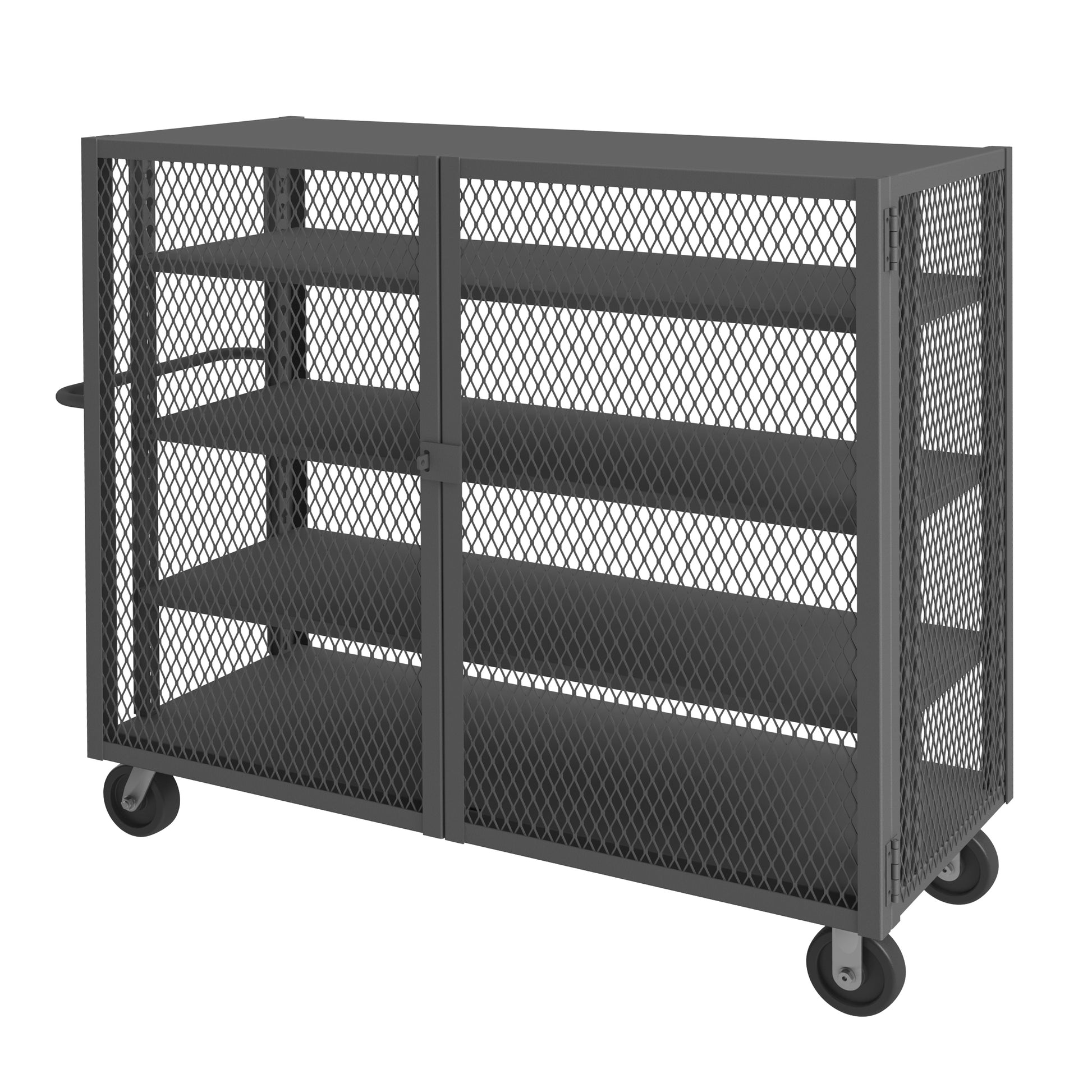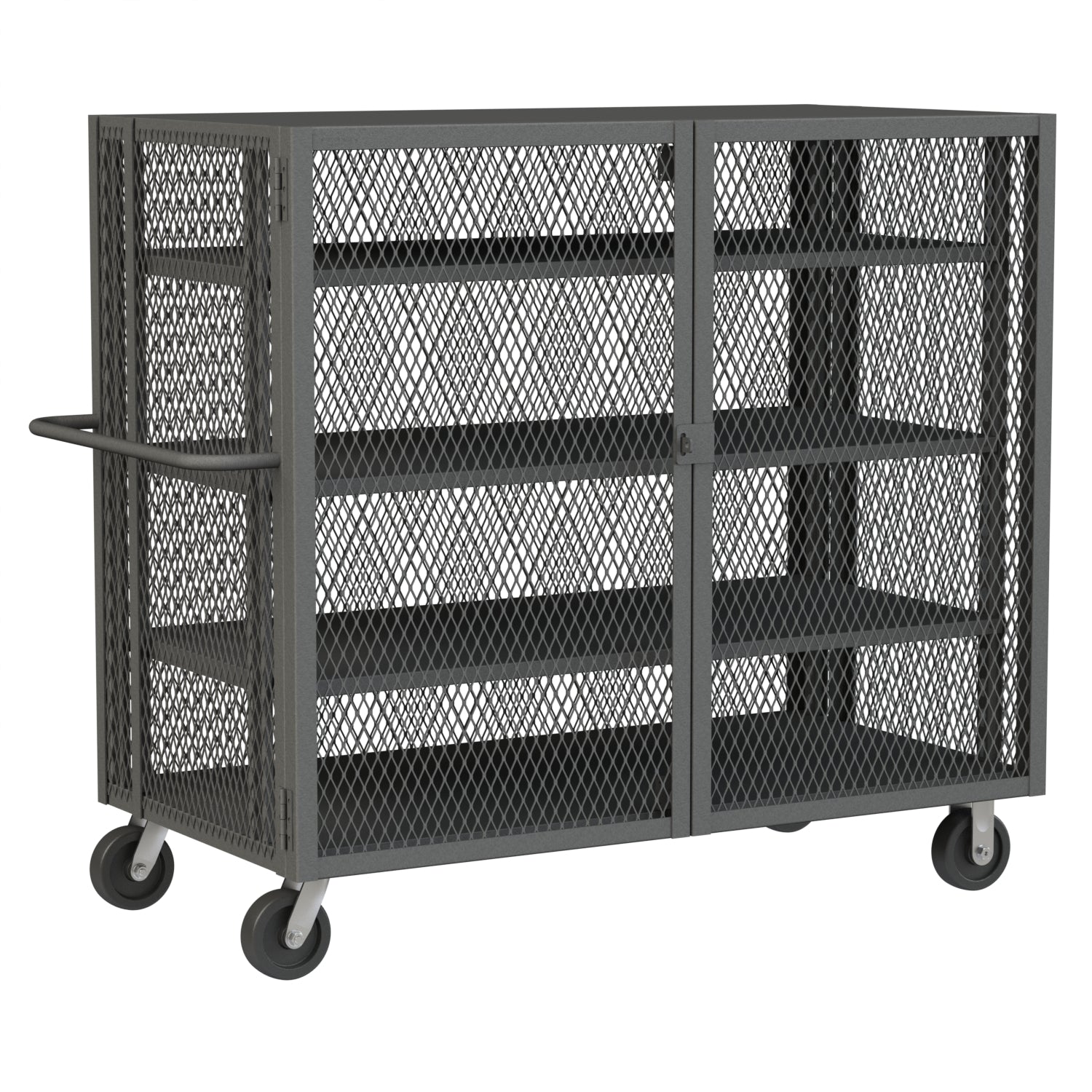 Security Mesh Truck, 30 x 60, 6" x 2" Phenolic Casters - (2) Rigid, (2) Swivel, 3 Adjustable Shelves, 1 Base Shelf, Tubular Push Handle, Pad-Lockable Doors, Gray